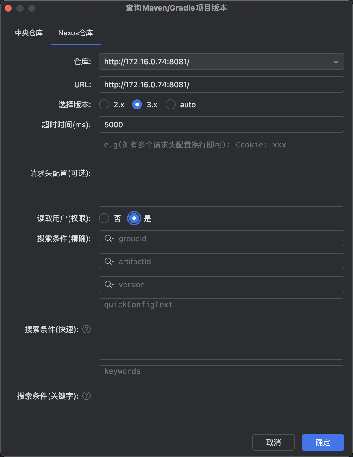 优先推荐采用nexus搜索缓存配置进行配置权限(特别是gradle项目自动识别配置会比较耗时)。