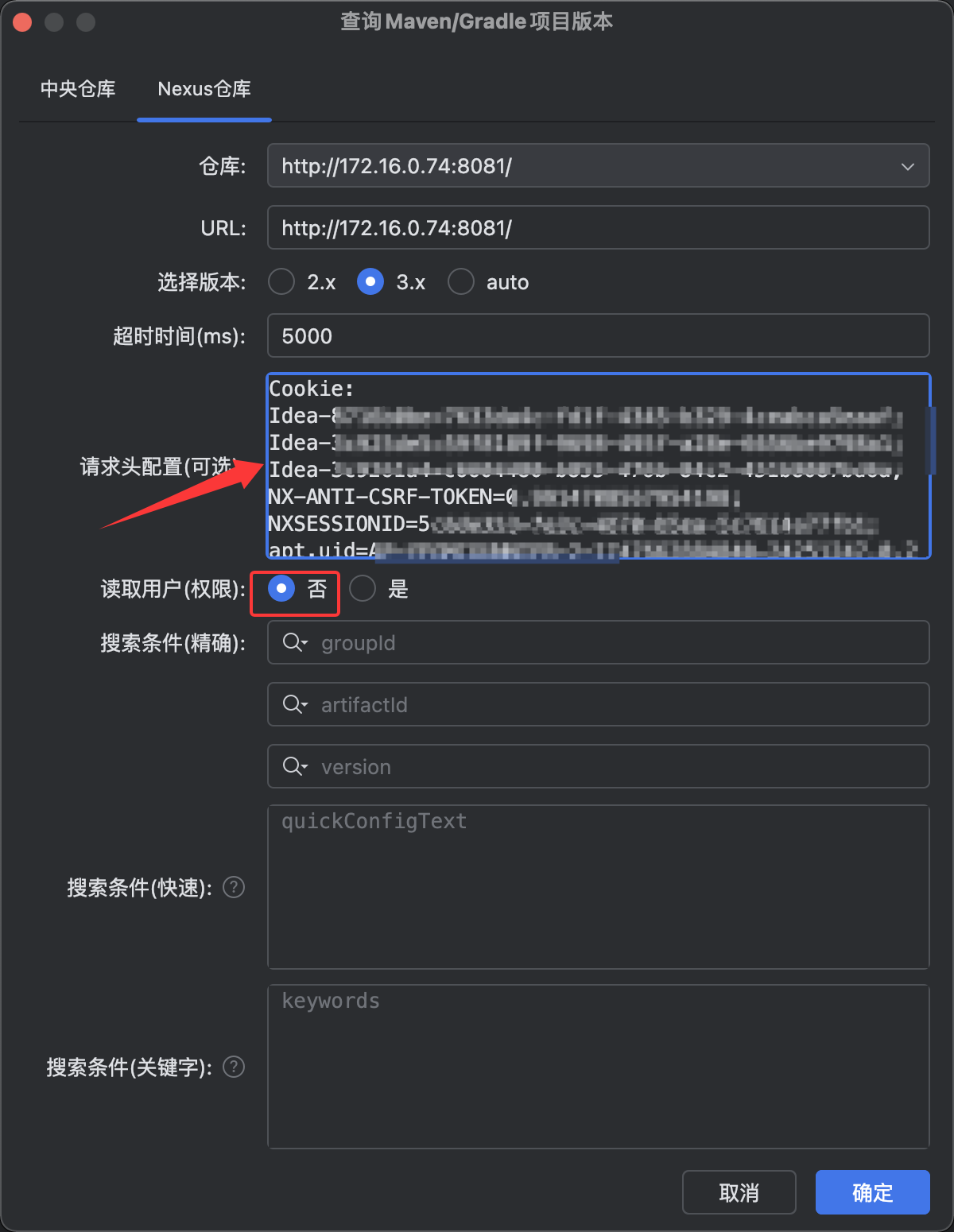 权限优先级: 请求头配置权限(Cookie / Authorization ...) > 读取用户权限开启 + nexus搜索缓存配置用户权限 > 读取用户权限开启 + maven / gradle项目配置读取用户权限